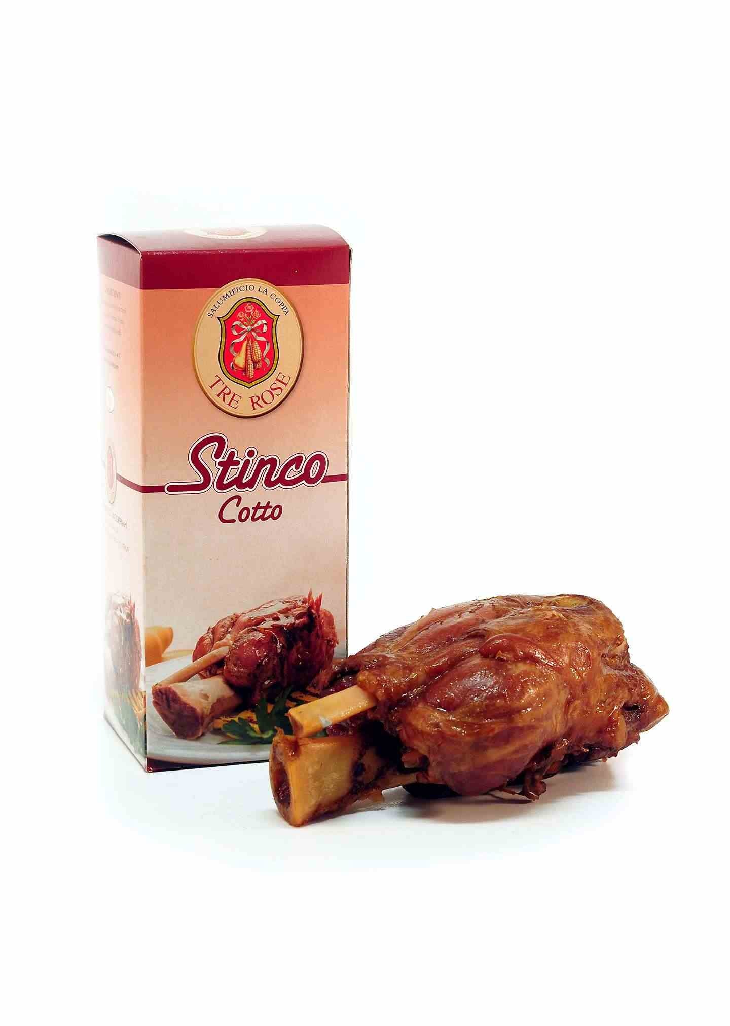 Lo stinco è ottenuto disossando le cosce del maiale; insaporito con sale e aromi naturali va fatto cuocere a bagnomaria per 1 ora.
