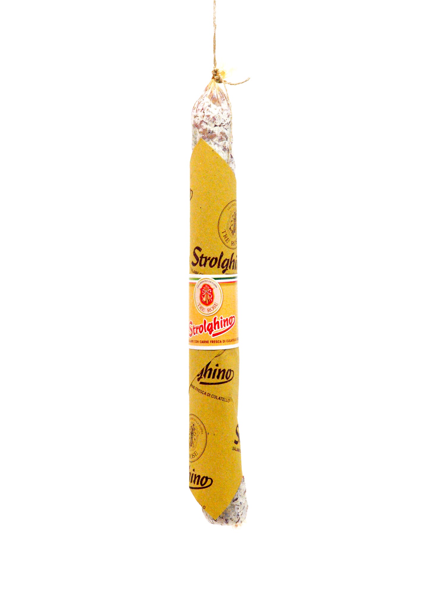 Lo strolghino è il tipico salame che viene prodotto nella bassa provincia tra Parma e Piacenza. E’ realizzato con la carne che si ottiene dalla rifilatura del prosciutto. E’ un salame magro, dolce e delicato.