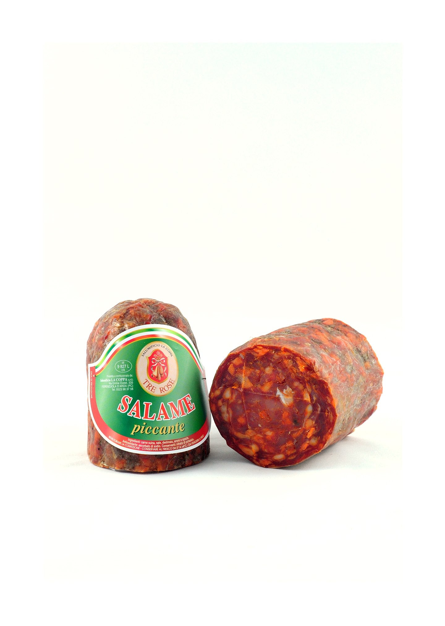 Questo salame presenta lo stesso impasto dei salametti mignon con l'aggiunta di peperoncino.